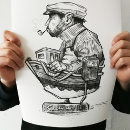 Ihre Leidenschaft für Illustration ist dabei immer der Ausgangspunkt für neue Arbeiten und der Versuch, eine Balance zwischen spiessiger Genauigkeit und ausreichend Dreckigkeit im Strich herzustellen.