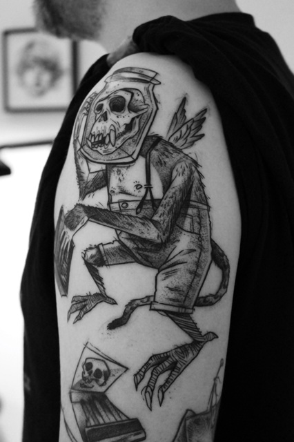 Of course my free artworks or prints are also available for tattooing, of course just one time. This also works the other way round! As I spend a lot of time on my designs and it´s somehow great to do something more out of it, here and there I will do some limited fineart or other self promo even from a design I did as a tattoo. No worries, if its a portrait of your mom, I won´t use it 🙂
